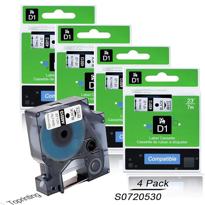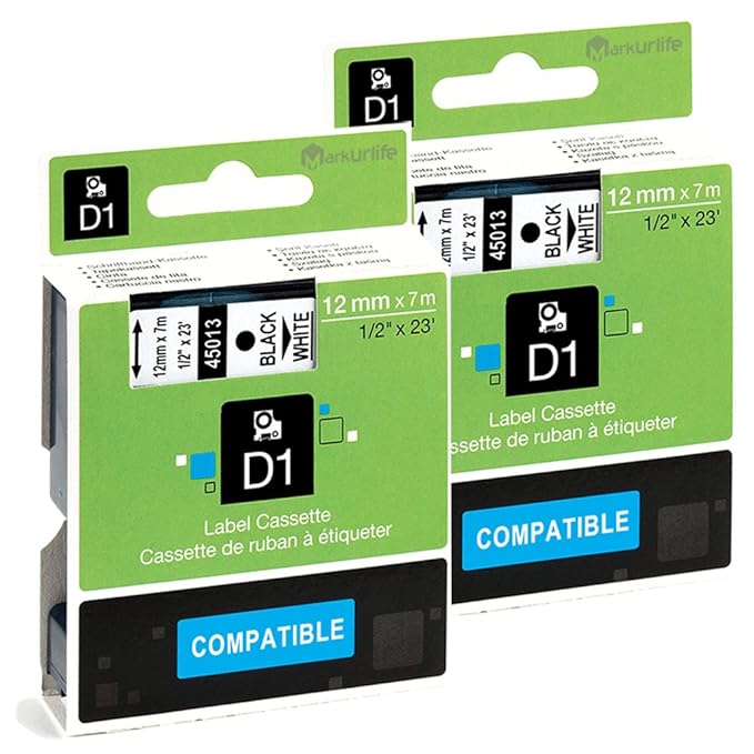 Markurlife Compatible Dymo D1 45013 S0720530 Label Tape, Black on White, 12mm x 7m, for Dymo ...